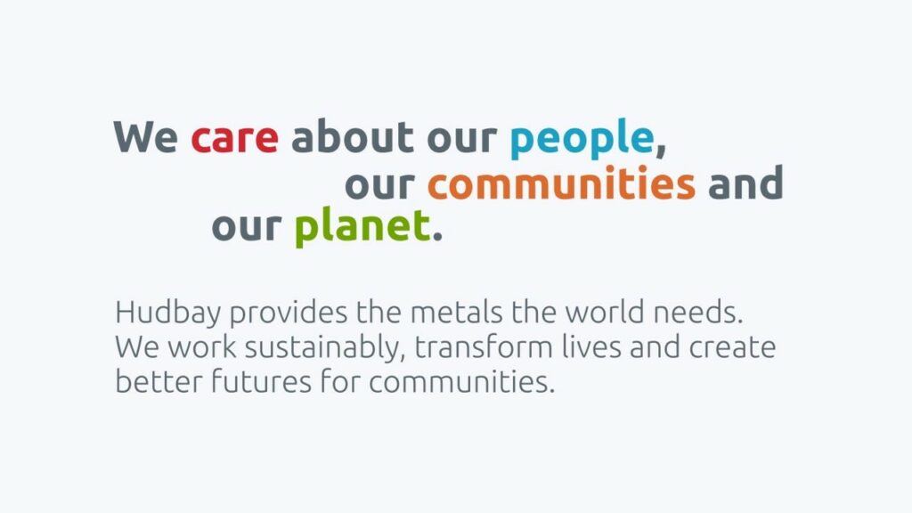 The value Hudbay creates and the impact it has is embodied in its purpose statement: “We care about our people, our communities and our planet. Hudbay provides the metals the world needs. We work sustainably, transform lives and create better futures for communities.” Hudbay’s mission is to create sustainable value and strong returns by leveraging its core strengths in community relations, focused exploration, mine development and efficient operations.